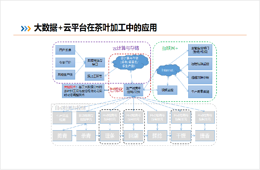 控制系統通過對茶葉加工生產線數字化管理與數據處理技術的研究,進一步提升茶葉加工生產線的數字化管理水平,并通過加工品質在線監測與反饋實現一葉一策的加工模式,通過加工大數據的處理與分析為工藝優化與設備改進提供支撐。