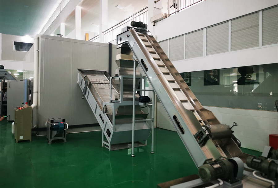 作業(yè)原理:連續(xù)發(fā)酵機(jī)可在發(fā)酵過程中實(shí)現(xiàn)供氧、換氣、加溫、增濕等功能,科學(xué)布局溫、濕度管道保證相對(duì)恒定的發(fā)酵環(huán)境,連續(xù)發(fā)酵機(jī)主機(jī)置于發(fā)酵箱體(房)內(nèi),設(shè)置多層輸送網(wǎng)帶,揉捻葉達(dá)到發(fā)酵要求后,自動(dòng)流出到下個(gè)環(huán)節(jié)。
